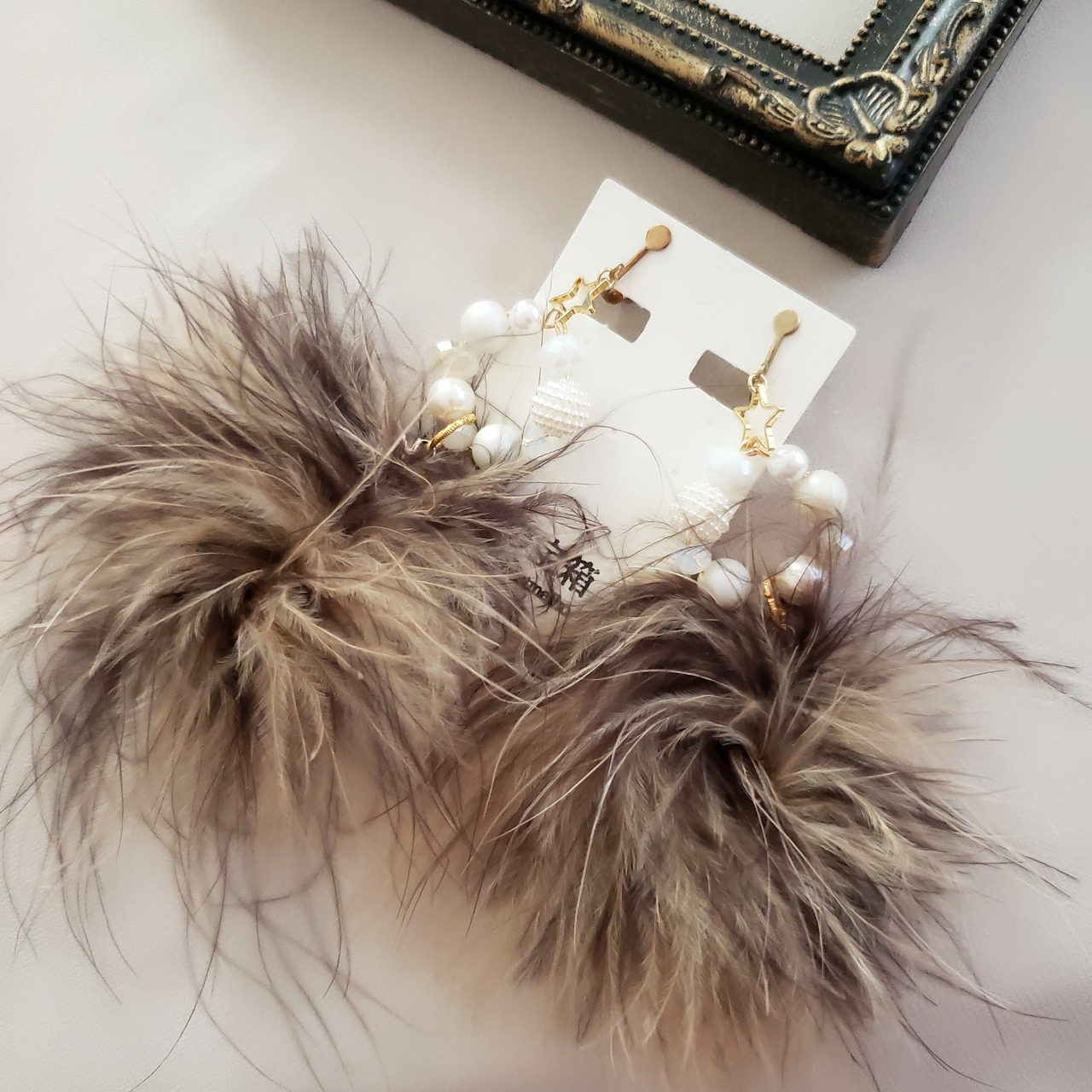 ブラウンMixのマラボーとパールなどホワイト系でサークルのパーツを作りました。