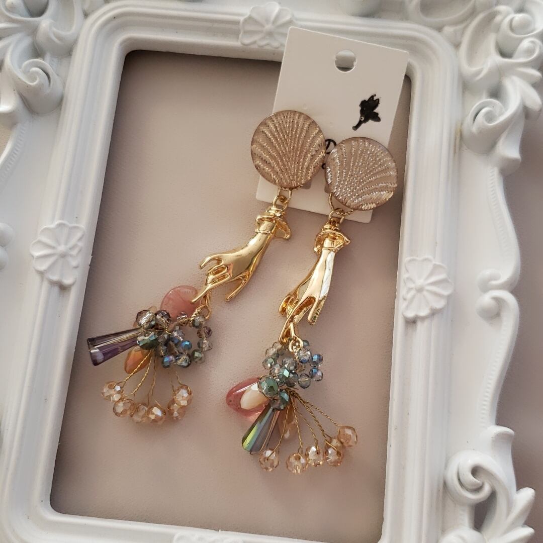 ハンドモチーフにビーズのボリュームのあるデザインを繋げて個性的な大ぶりに!
