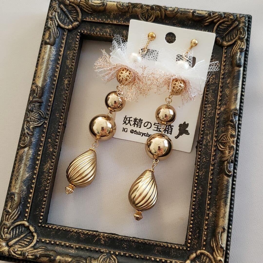 ゴールド系にチュールを合わせた大人かわいい大ぶりデザインです。