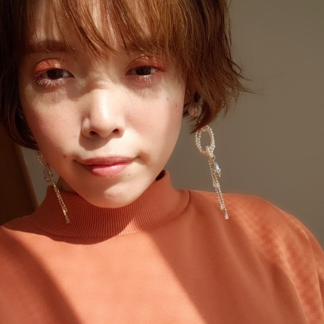 パールとラインストーンチェーンのロングデザイン。