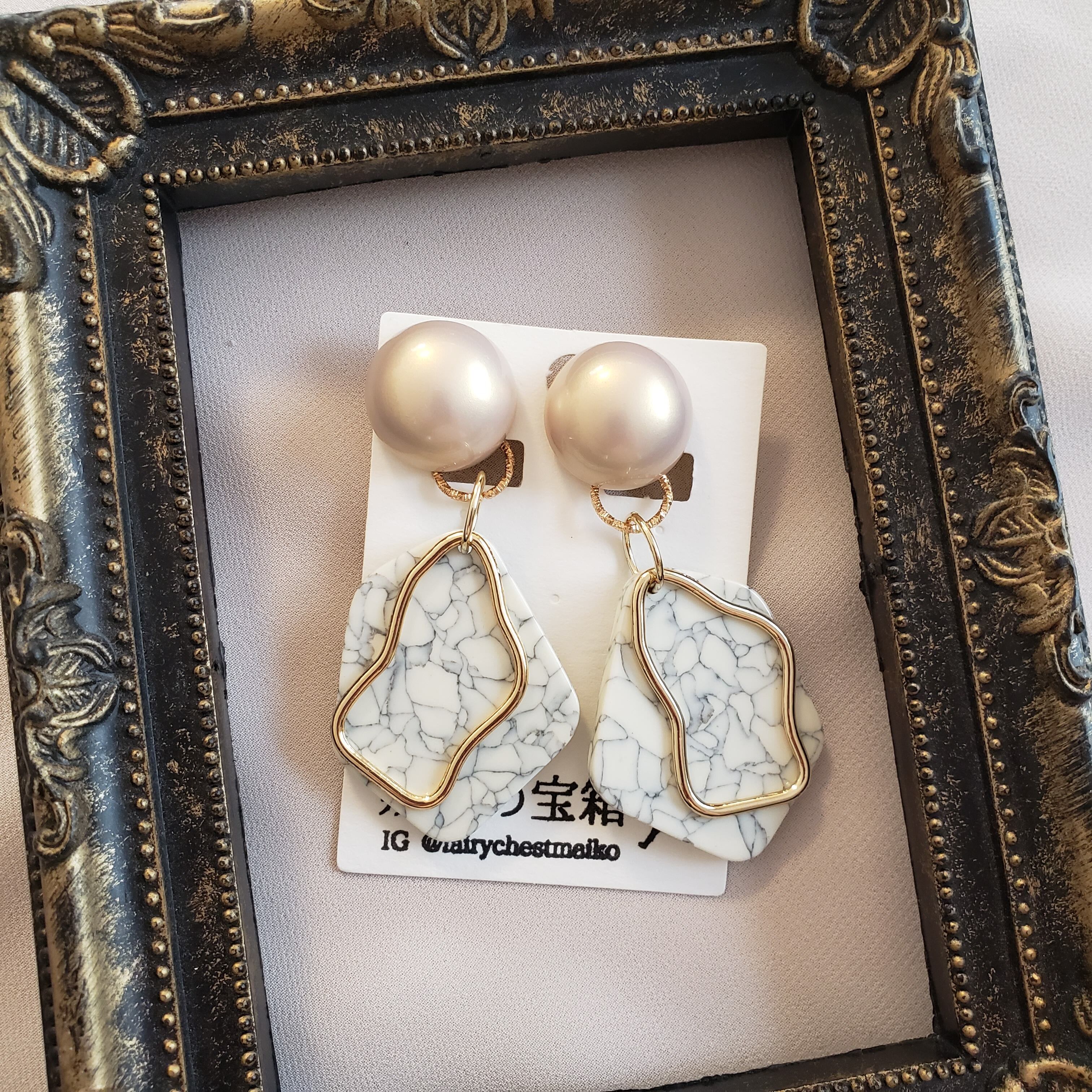 大理石のような模様のパーツとゴールドの組み合わせ。